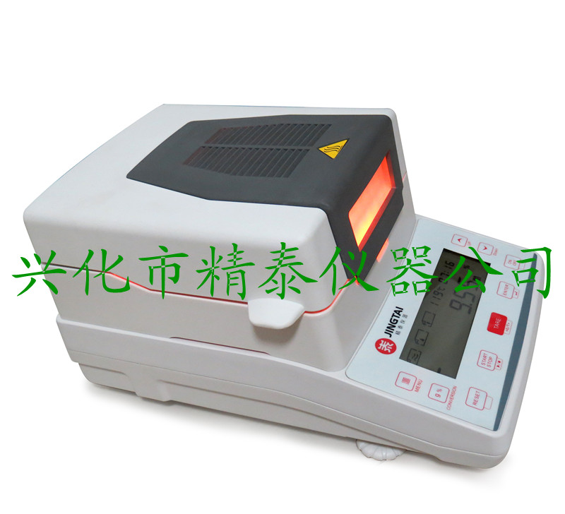 傳統的水分測定一般是采用烘箱干燥法,一個樣品的測試需要兩三個甚至四五個小時,而且還需通過天平稱重、人工計算,才能得出樣品的水分值(含水率)。烘箱法水分測定的低效率,不能夠適應高節奏的企業生產需要。精泰牌JT-K系列快速水分測定儀是興化市精泰儀器儀表有限公司新研制的大功率水分測定儀器,采用大效率的烘干加熱器-高品質的環狀鹵素燈,對樣品進行快速、均勻的加熱,樣品的水份持續不斷的被烘干。整個測量過程,儀器全自動的實時顯示測量結果:樣品重量、含水量、含固量、測定時間、加熱溫度等。